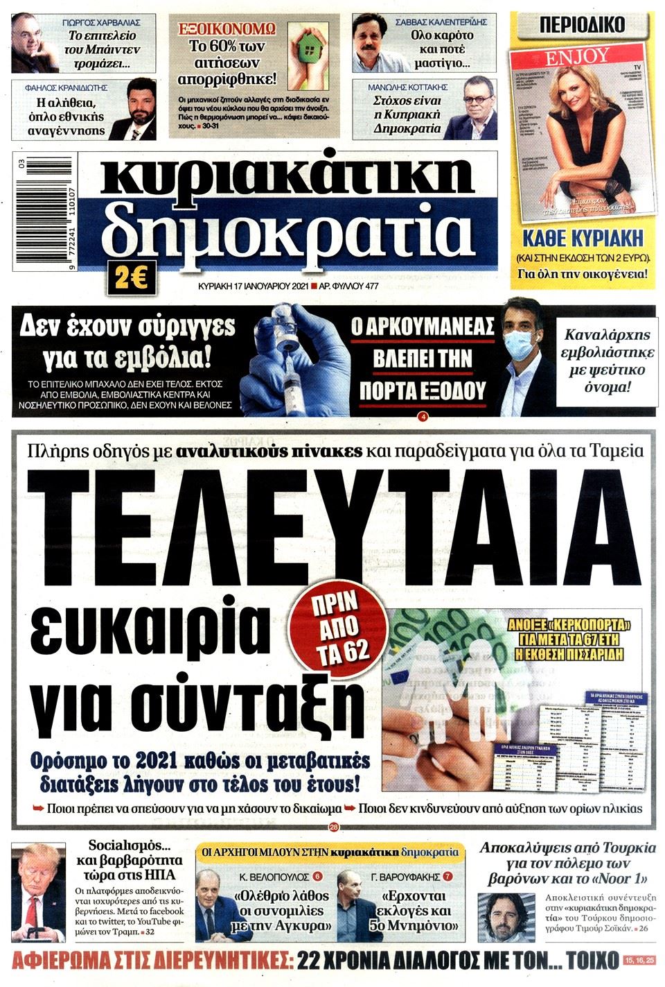 Αποκαλυπτικη όπως κάθε Κυριακή η εφημερίδα Δημοκρατία, κυκλοφορεί σήμερα με πρωτοσέλιδο τίτλο την τελευταία ευκαιρία που έχουν οι ασφαλισμένοι να πάρουν σύνταξη πριν τα 62 έτη καθώς οι αλλαγές που έρχονται στο ασφαλιστικό τους επόμενους μήνες θα είναι συγκλονιστικές.