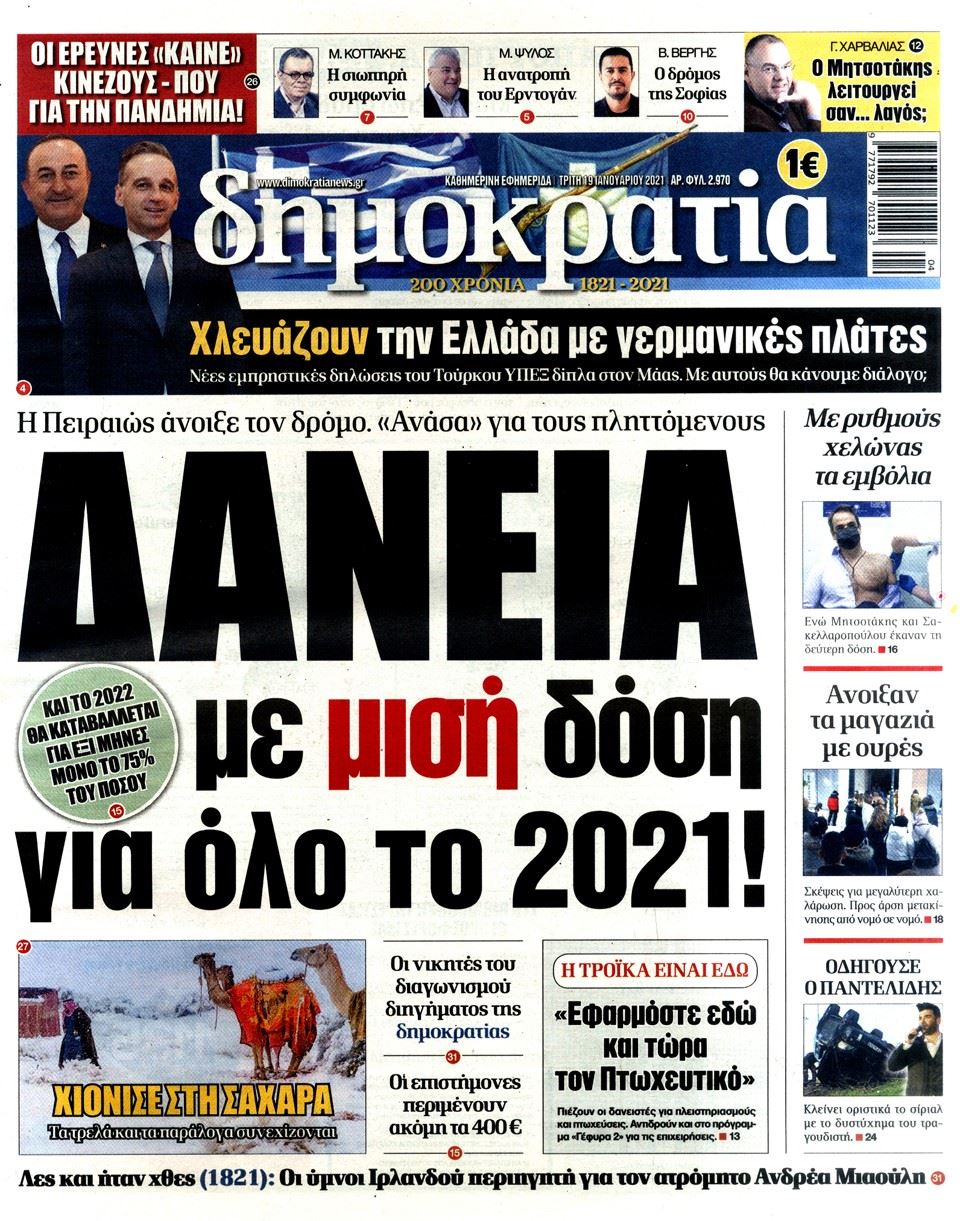 Πρωτοσέλιδο θέμα στην Εφημερίδα Δημοκρατία σήμερα όσα συνέβησαν χθες με τις προκλητικές δηλώσεις του Τούρκου υπουργού εξωτερικών, μπροστά στον Γερμανό ομόλογο του.