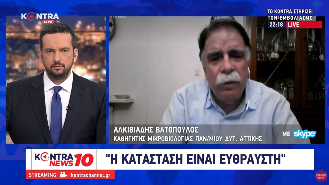 Ο Αλκιβιάδης Βατόπουλος καθηγητής μικροβιολογίας στο Kontra News 10 με τον Γιώργο Μελιγγώνη