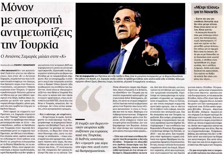 Ποια είναι αυτά; Τι λέει στην Καθημερινή ο Α.Σαμαράς:
