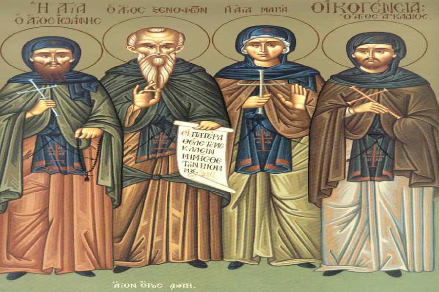 Ο ΟΣΙΟΣ ΞΕΝΟΦΩΝ μετά της συμβίας του ΜΑΡΙΑΣ και των τέκνων τους ΑΡΚΑΔΙΟΥ και ΙΩΑΝΝΗ