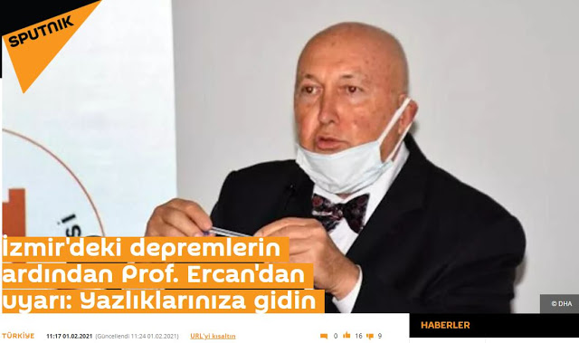 Δύο σεισμοί σημειώθηκαν σε διάστημα ενός λεπτού από την περιοχή Karaburun της Σμύρνης. Μετά τους σεισμούς, ο καθηγητής Δρ. Αχμέτ Ερτσάν προέβη σε δηλώσεις: «Υπάρχει ένα συμβάν, σαν μια σεισμική καταιγίδα αυτή τη στιγμή. Αυτό δεν είναι καλό σημάδι».