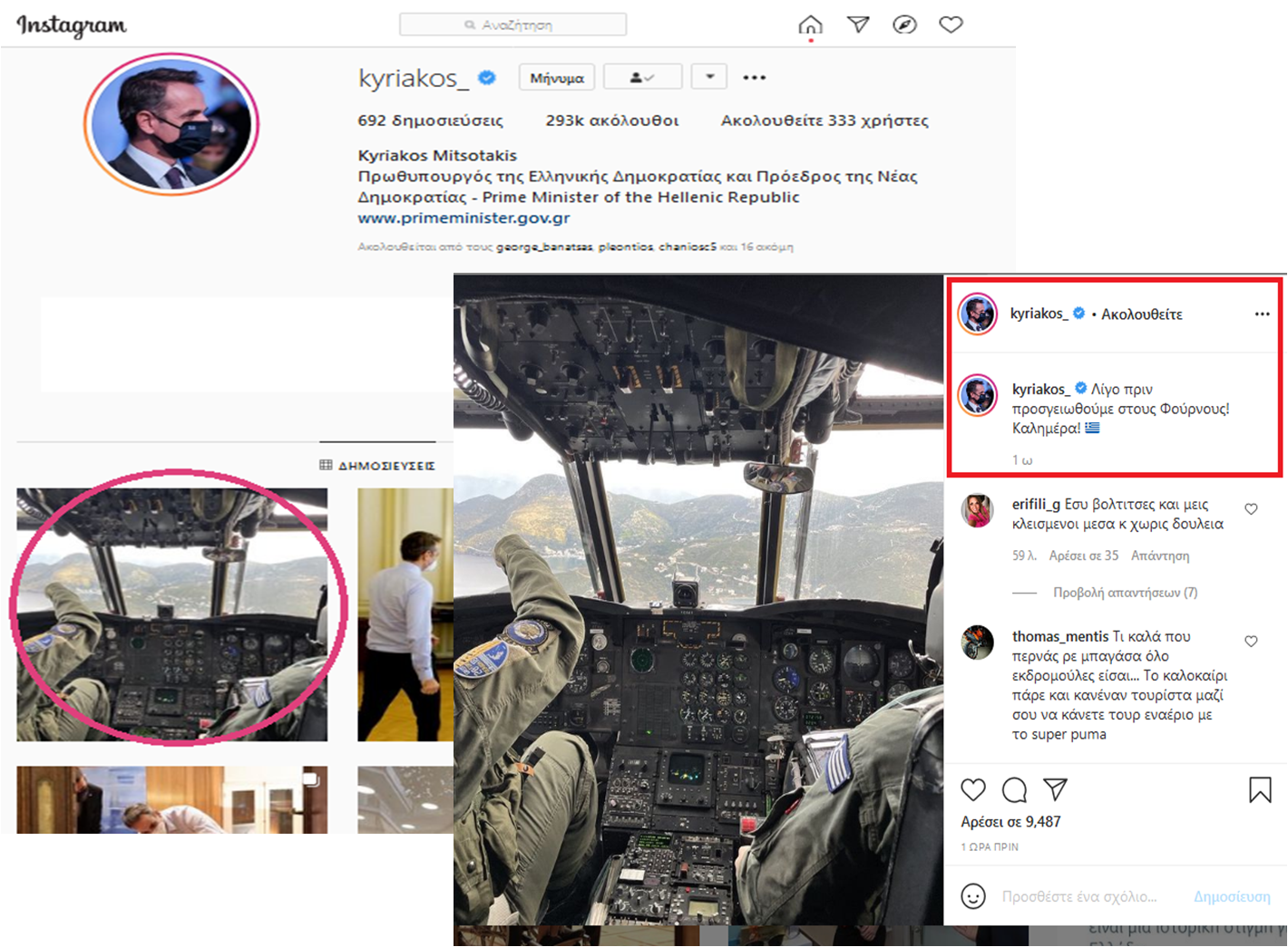Φωτογραφία από το cockpit του Σινούκ ανέβασε πριν λίγο ο πρωθυπουργός στο Instagram !!