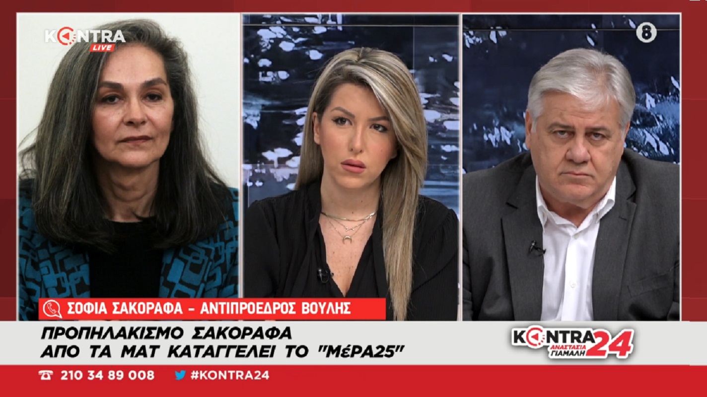 Η βουλευτής του ΜέΡΑ25 και αντιπρόεδρος της Βουλής Σοφία Σακοράφα για τον σημερινό προπηλακισμό της από τα ΜΑΤ στην εκπομπή της Kontra24 με την Αναστασία Γιάμαλη