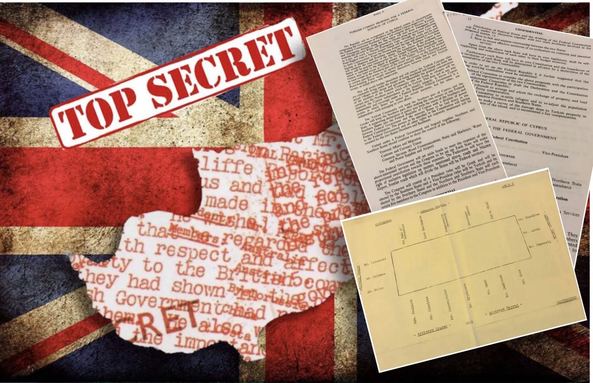 Η πρώτη σελίδα της τουρκοκυπριακής πρότασης του 1964 για «Ομόσπονδη Κυπριακή Δημοκρατία» (μεταξύ Απριλίου και Ιουνίου 1964) που έστειλε στο Λονδίνο η Βρετανική Υπάτη Αρμοστεία στη Λευκωσία.