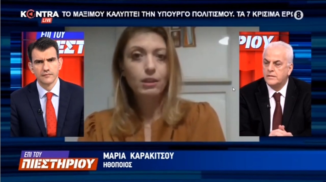 Η ηθοποιός Μαρία Καρακίτσου Απόφοιτος της Ανώτερη Σχολής Δραματικής Τέχνης Θεμέλιο και του Τμήματος Διεθνών και Ευρωπαϊκών Σπουδών του Παντείου Πανεπιστημίου ΕΠΙ ΤΟΥ ΠΙΕΣΤΗΡΙΟΥ με τον Γιώργο Σιαδήμα και τον Βασίλη Σκουρή.