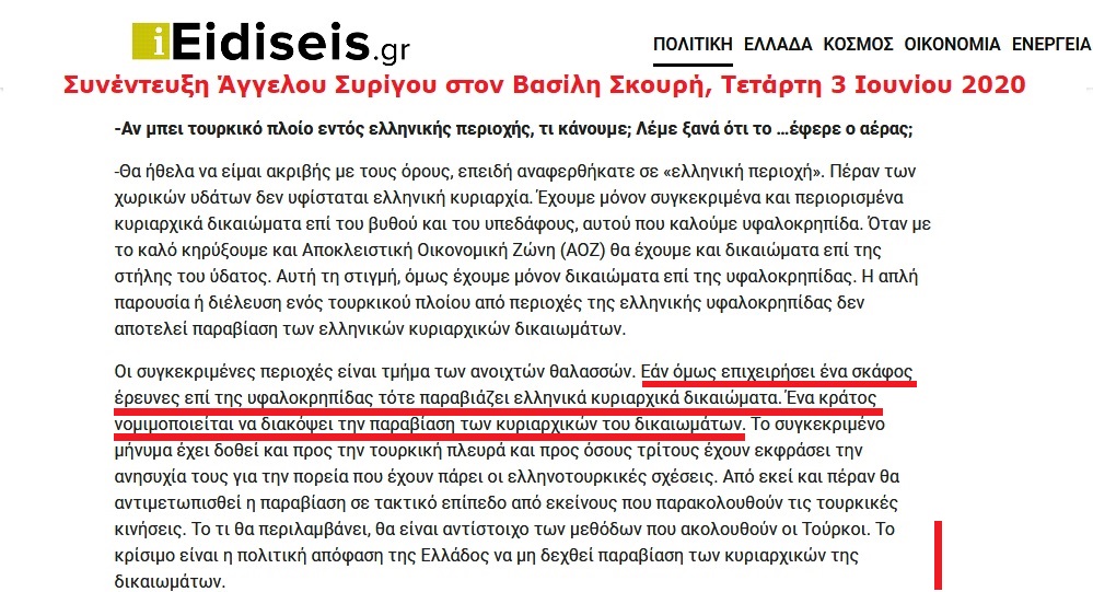 επομένως δεν υπάρχουν δικαιώματα ερευνών και εκμετάλλευσης. (ΕΘΝΟΣ 19/10/2020)