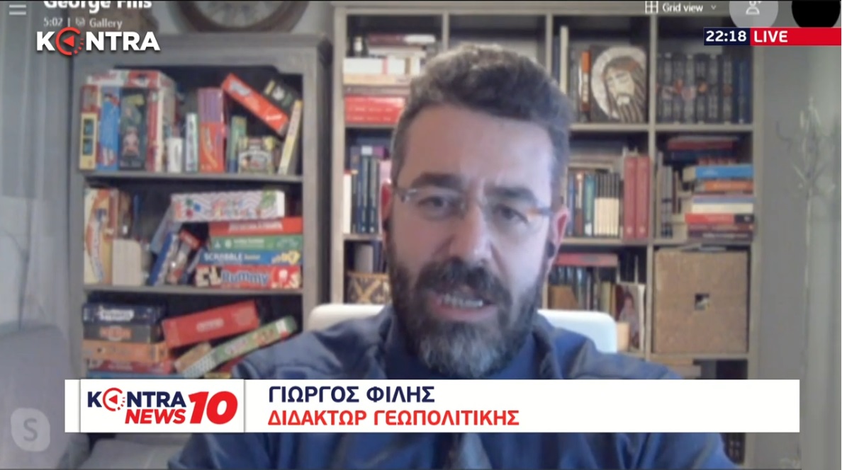 Ο διδάκτωρ γεωπολιτικής και καθηγητής γεωστρατηγικής στην Σχολή Εθνικής Άμυνας (ΣΕΘΑ) Δρ. Γιώργος Φίλης στο Kontra24 με τον Αιμίλιο Λιάτσο.