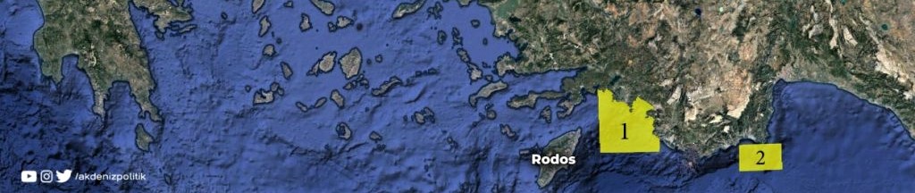 Η άσκηση, σύμφωνα με τον υδρογραφικό σταθμό της Αττάλειας, θα διεξαχθεί στις 7 Μαρτίου και η δεσμευμένη περιοχή (το νούμερο 1 στον χάρτη) ξεκινά από τα τουρκικά παράλια.