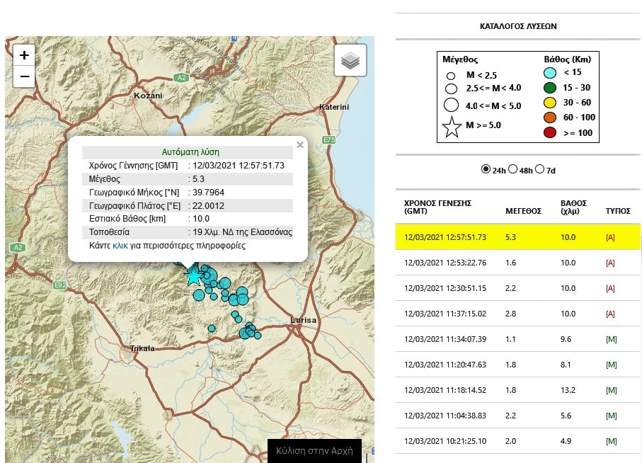 Ισχυρός Σεισμός Ελασσόνα 5,2 ρίχτερ…