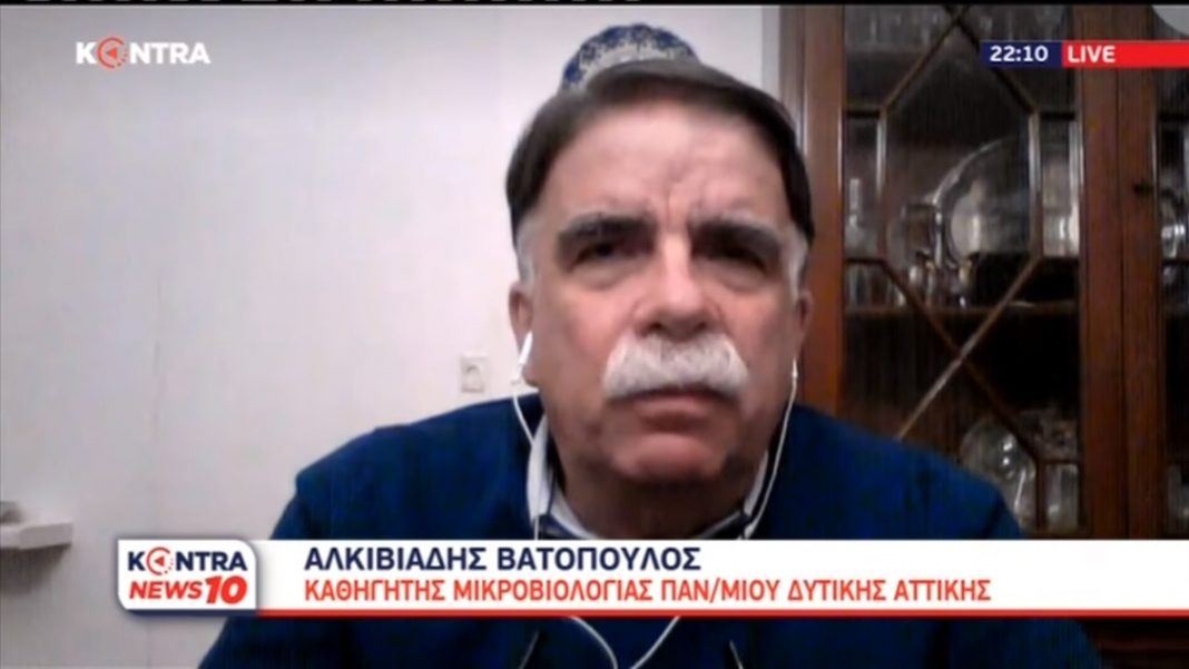 Ο Αλκιβιάδης Βατόπουλος καθηγητής μικροβιολογίας και μέλος επιτροπής για τον COVID-19 στο Kontra News 10 με τον Γιώργο Μελιγγώνη