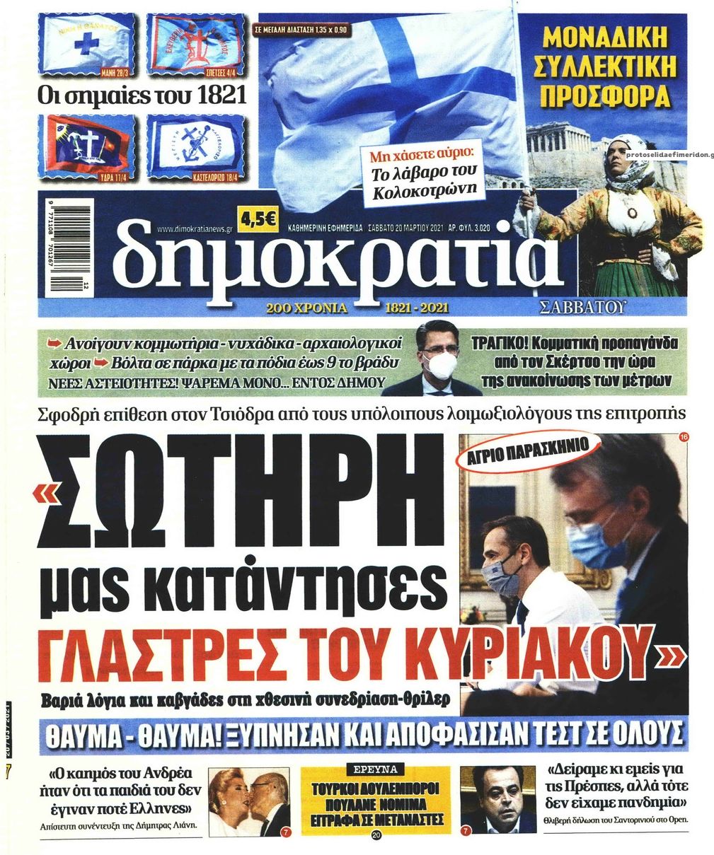 Τα πρωτοσέλιδα των εφημερίδων σήμερα Σάββατο