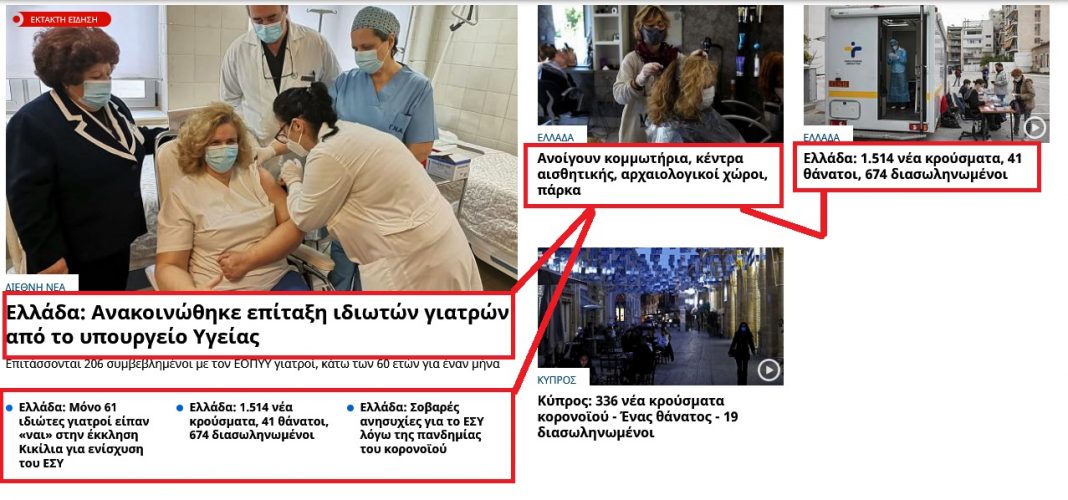 Την Κυριακή ο πρωθυπουργός Κ. Μητσοτάκης υπερασπίστηκε τις πολιτικές επιλογές του στο θέμα της επίταξης του ιδιωτικού ιατρικού τομέα, τονίζοντας ότι «εάν είχαμε σπεύσει να κάνουμε αυτό που ζητούσε η αντιπολίτευση από τον περασμένο Απρίλιο, θα είχαμε κάνει επιτάξεις χωρίς να τις χρειαζόμασταν τότε, ξοδεύοντας δεκάδες εκατομμύρια. Όμως τώρα που απαιτείται η συνεισφορά του ιδιωτικού τομέα, προχωράμε σε πρώτη φάση σε συνεργασία μαζί του».