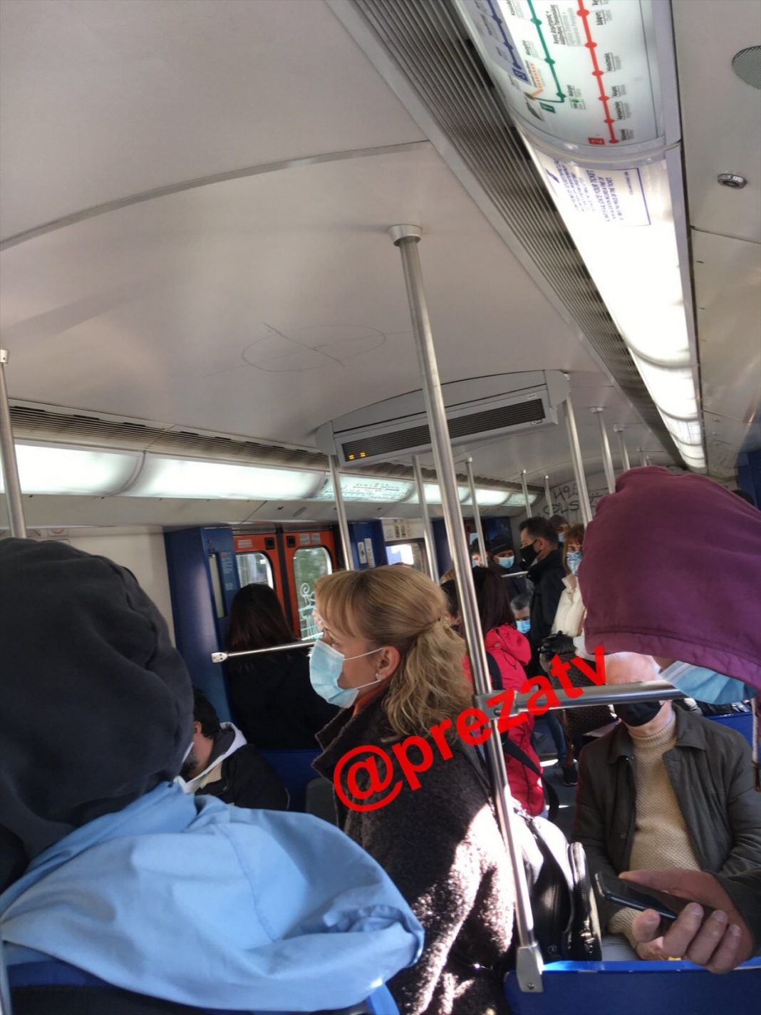 Αυτή είναι η κατάσταση που επικρατεί τώρα στον ΗΣΑΠ – Είμαστε κυριολεκτικά ο ένας πάνω στον άλλον… Πείτε μας μετά για ατομική ευθύνη, lockdown και μέτρα προστασίας…Η κυβέρνηση δεν έκανε τίποτε για να αυξήσει τα δρομολόγια…