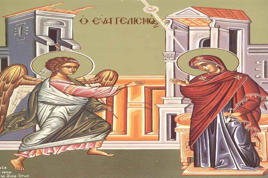 Είναι το χαρμόσυνο μήνυμα της θείας ενσάρκωσης, πού με τόσο σαφή τρόπο μας το παρουσιάζει ο ευαγγελιστής Λουκάς στο Ευαγγέλιο του (κεφ. Α’ στίχ. 26-38). Την ήμερα αυτή, ο θεόσταλτος αρχάγγελος Γαβριήλ παρουσιάζεται και λέει στην Παρθένα Μαρία ότι θα γεννήσει υιό, πού θα είναι ο Σωτήρ του κόσμου. Αξίζει, όμως, να δούμε πώς οι εμπνευσμένοι υμνωδοί της Εκκλησίας μας έψαλαν το κοσμοσωτήριο άγγελμα: “Σήμερον χαράς Ευαγγέλια παρθενική πανήγυρις τα κάτω τοις άνω συνάπτεται· ο Αδάμ καινουργείται ή Εύα της πρώτης λύπης ελευθερούται και ή σκηνή της καθ’ ημάς ουσίας τη θεώσει του προσληφθέντος φυράματος ναός Θεού κεχρημάτικεν. “Ω μυστήριον! ο τρόπος της κενώσεως άγνωστος, ο τρόπος της συλλήψεως άφραστος. Άγγελος λειτουργεί τω θαύματι παρθενική γαστήρ τον Υίόν υποδέχεται, Πνεύμα άγιον καταπέμπεται Πατήρ άνωθεν ευδοκεί, και το συνάλλαγμα κατά κοινήν πραγματεύεται βούλησιν εν ω και δι’ ου σωθέντες, συνωδά τω Γαβριήλ, προς την Παρθένον βοήοωμεν χαίρε, κεχαριτωμένη, ο Κύριος μετά σου, εξ ης ή σωτηρία, Χριστός ο Θεός ημών, την καθ’ ημάς προσλαβόμενος φύσιν προς εαυτόν έπανήγαγεν”.