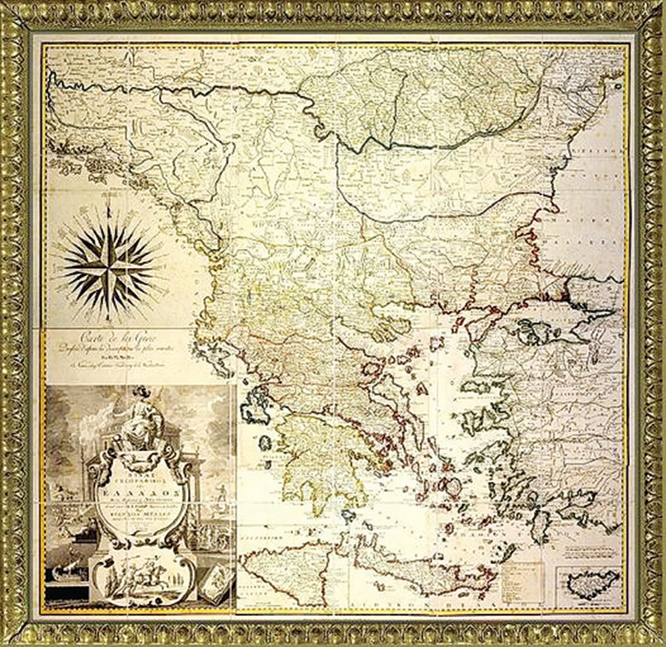 Πίναξ Γεωγραφικός τῆς Ἑλλάδος. Ὑπό Α. Α. Γαζή Μηλιώτου καὶ ἐκδοθείς παρά Φρανσουά Μύλλερ. Ἀφιερωθείς τῷ Γένει τῶν Ἑλλήνων.  ΑΩ 1800. Ἐν Βιέννη. Ἀρχεῖο ΙΓΚ