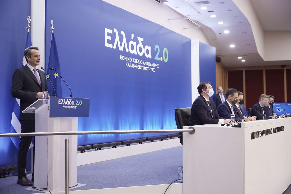 Το σκηνικό μιλούσε από μόνο του. Από τους επτά που βρίσκονταν στο πάνελ της παρουσίασης του σχεδίου Ελλάδα 2.0 μόνο ένας ήταν αιρετός: ο Κυριάκος Μητσοτάκης.