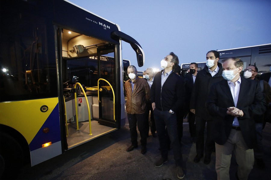 Στο αμαξοστάσιο του ΟΣΥ βρέθηκε νωρίς το πρωί ο Κυριάκος Μητσοτάκης για την παραλαβή των πρώτων νέων λεωφορείων, ένα χρόνο μετά την έναρξη της πανδημίας.