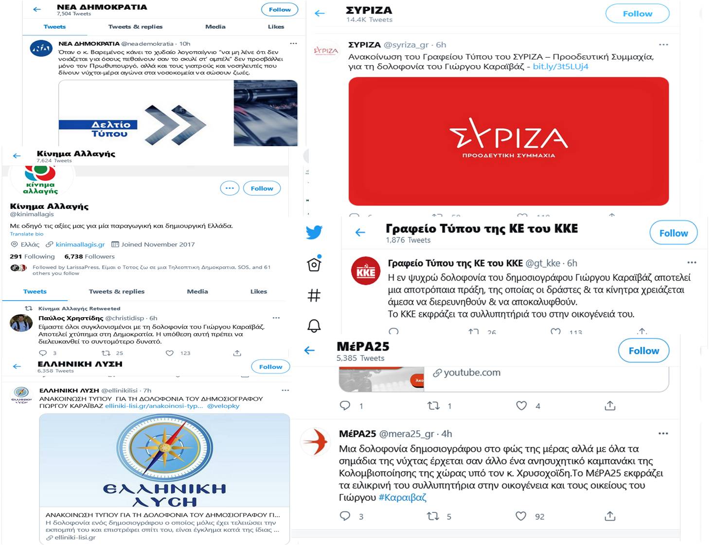Όλα τα κόμματα έβγαλαν ανακοίνωση… για την εν ψυχρώ δολοφονία του δημοσιογράφου Γιώργου Καραϊβάζ… εκτός της Νέας Δημοκρατίας…