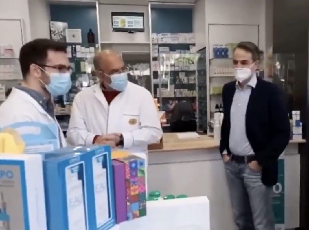 Με τα χέρια στις τσέπες εμφανίστηκε ξανά ο Κυριάκος Μητσοτάκης σήμερα στο φαρμακείο όπου πήγε για να πάρει το self test της κόρης του που πάει στην Τριτη Λυκείου.