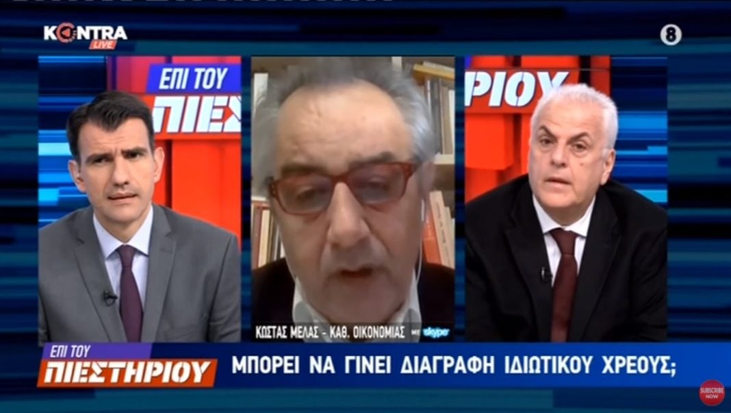 Ο Κώστας Ι. Μελάς είναι διδάκτορας (Ph.D) του τμήματος Αστικής και Περιφερειακής Ανάπτυξης του Παντείου Πανεπιστημίου με ειδίκευση στα Διεθνή Νομισματικά ήταν καλεσμένος στην εκπομπή ΕΠΙ ΤΟΥ ΠΙΕΣΤΗΡΙΟΥ με τον Γιώργο Σιαδήμα και τον Βασίλη Σκουρή