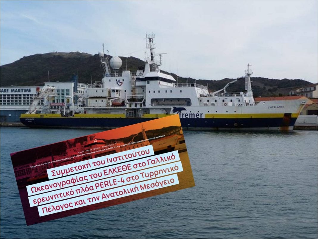 Έλληνες ερευνητές του Ινστιτούτου Ωκεανογραφίας του Ελληνικού Κέντρου Θαλασσίων Ερευνών θα συμμετάσχουν σε ερευνητική αποστολή στο πλαίσιο του ερευνητικού πλόα PERLE-4 της Γαλλικής Δημοκρατίας, ο οποίος θα λάβει χώρα στην περιοχή του Τυρρηνικού Πελάγους και της Ανατολικής Μεσογείου από 27/03/2021 έως 29/04/2021.Η αποστολή θα διενεργηθεί με το Γαλλικό ερευνητικό σκάφος “Ν/ΟL’ Atalante” του Γαλλικού Ερευνητικού Κέντρου ΙFREMER, με αφετηρία και λήξη στο λιμάνι του LaSeyne-sur-MerΓαλλίας.