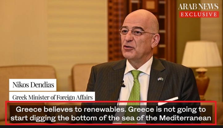 Η Ελλάδα δεν ενδιαφέρεται για γεωτρήσεις στο Αιγαίο και την Ανατολική Μεσόγειο, δηλωσε ο Νίκος Δένδιας μιλώντας στο αραβικό δίκτυο Arab News και μας έβαλε σε περίεργες σκέψεις.