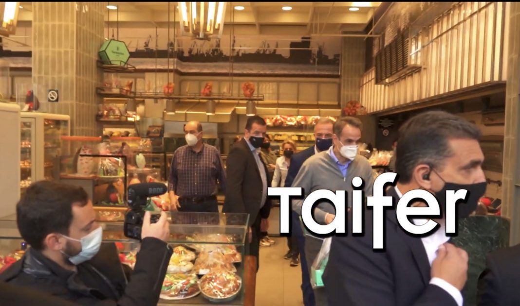 Ο Κυριάκος Μητσοτάκης ψωνίζει τσουρέκια για το Πάσχα στην Θεσσαλονίκη. “Ωραίος βγήκες παρά την μάσκα!” είπε ο πρωθυπουργός σε έναν πολίτη με τον οποίο έβγαλε φωτογραφία έξω από το ζαχαροπλαστείο. Ο Κυριάκος Μητσοτάκης ψώνισε τσουρέκια παρέα με τον υφυπουργό Μακεδονίας-Θράκης, Σταύρο Καλαφάτη ενώ ρώτησε περαστικούς πολίτες αν έχουν κάνει το εμβόλιο για τον κορωνοϊό.