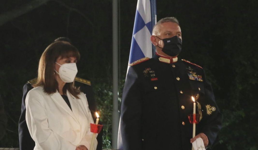 Ο Α/ΓΕΕΘΑ «τρέχει» να επαναφέρει σε στάση προσοχής την ΠτΔ η οποία βαδίζει αμέριμνη κατά τη στιγμή της ανάκρουσης του Εθνικού Ύμνου!