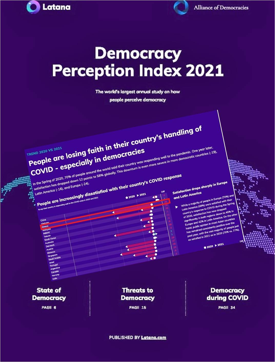 Η έκδοση 2021 προσφέρει μια καταγραφή-σύγκριση των παγκόσμιων τάσεων απέναντι στη δημοκρατία από την αρχή της κρίσης COVID. Τα αποτελέσματα βασίζονται σε αντιπροσωπευτικές συνεντεύξεις (μεταξύ 24ης Φεβρουαρίου και 14ης Απριλίου 2021) με περισσότερους από 53.000 ερωτηθέντες από 53 χώρες