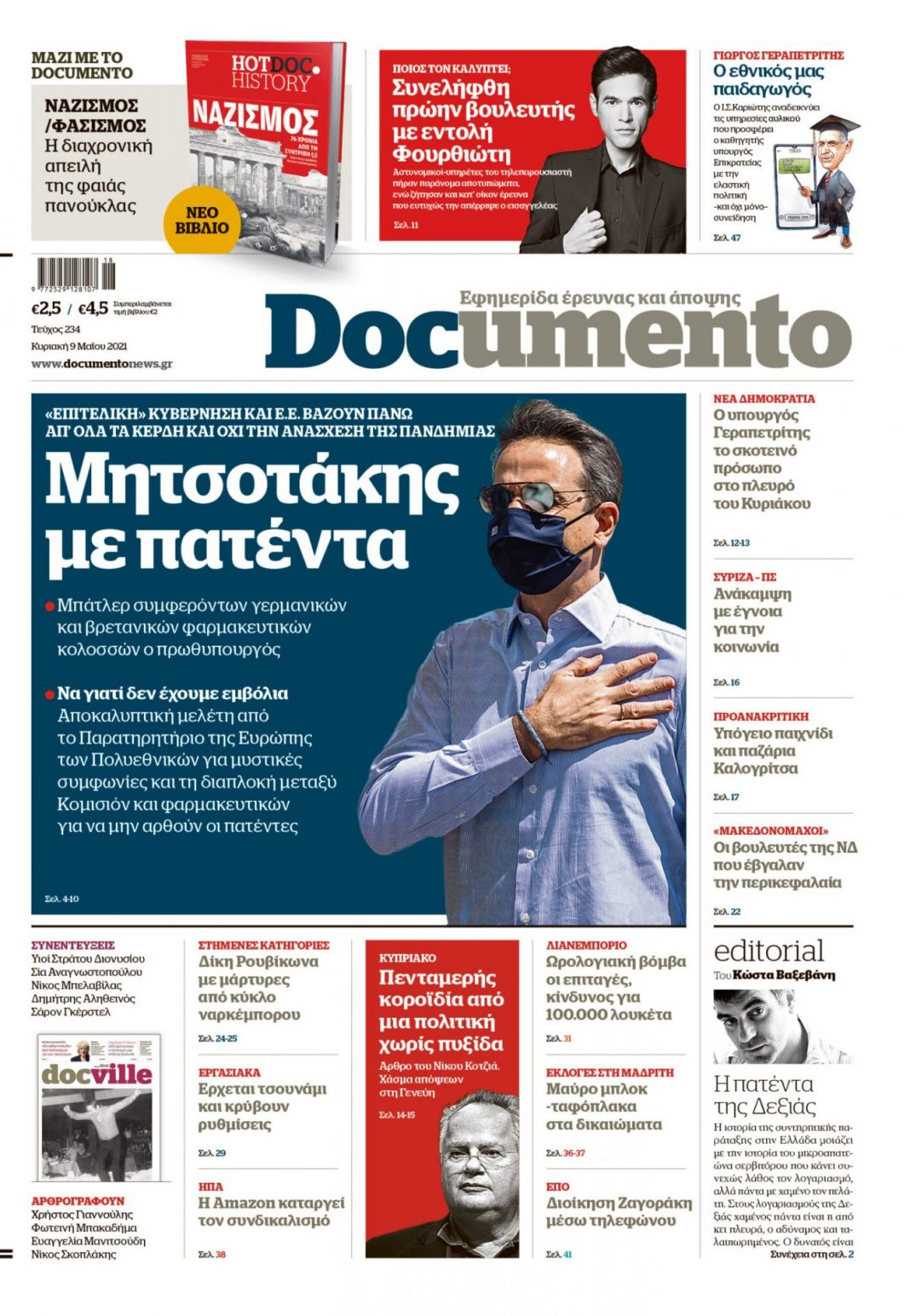 Με αποκαλυπτικό πρωτοσέλιδο κυκλοφορεί αξία μύτη την Κυριακή η εφημερίδα του Κώστα Βαξεβανη, Documento.