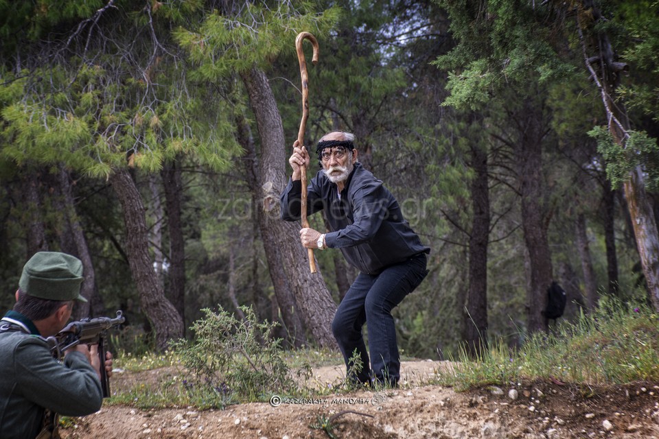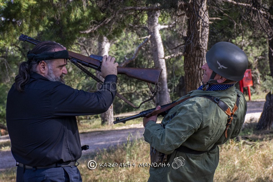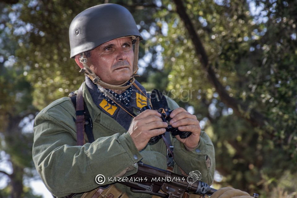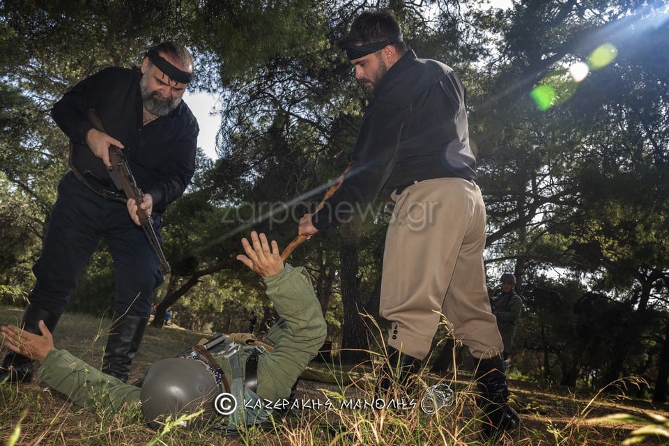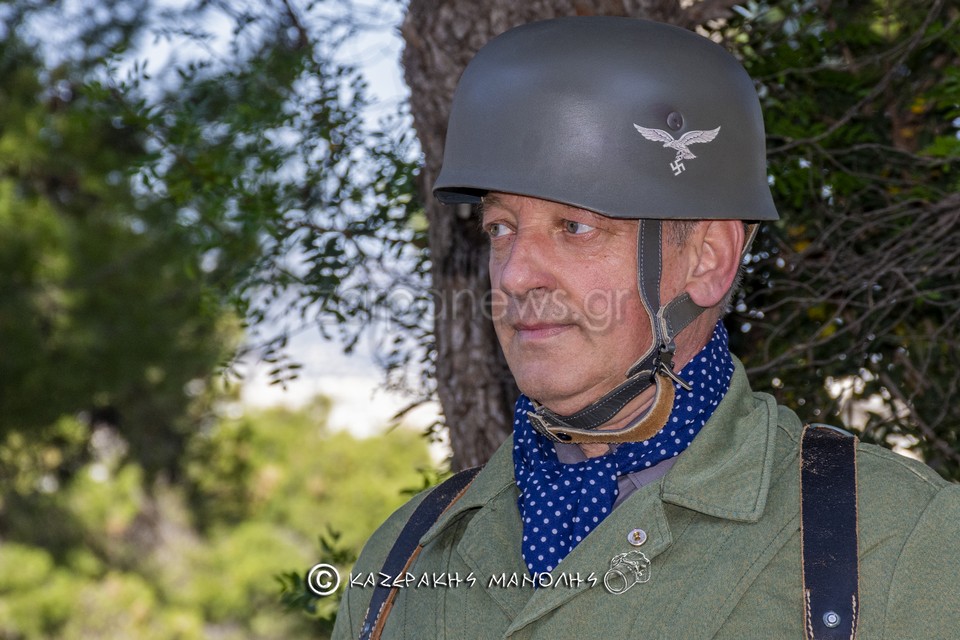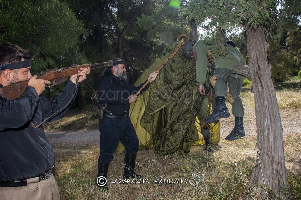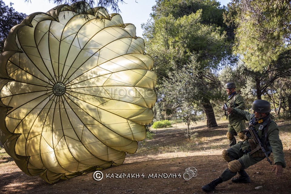 Ο Μανώλης Καζεράκης, φωτογράφος και μέλος της Ομοσποδίας, ανέφερε: “Πάντα κατεβαίναμε στη Μητρόπολη, πηγαίναμε στο Σύνταγμα για κατάθεση στεφάνων, φέτος δεν θα γινόταν αυτό. Και σκέφτηκα να κάναμε κάτι άλλο, με τη βοήθεια και του προέδρου της Ομοσπονδίας. Βρήκα τα παιδιά που είναι μια παρέα αναβιωτών και στο Πάρκο Τρίτση κάναμε την αναπαράσταση. Αυτοί έχουν γνήσιες στολές, αλεξίπτωτα, το απαραίτητο υλικό. Μας πήρε περίπου τρεις ώρες.”