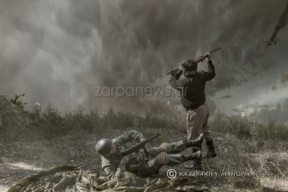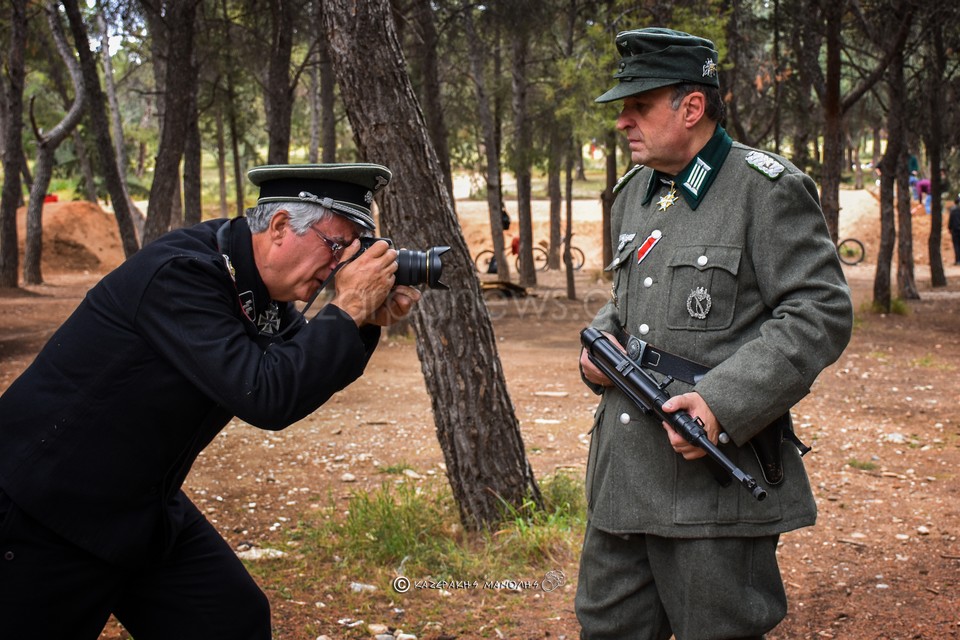 Στη φωτογράφιση πήραν μέρος μέλη της Ομάδας Αναβίωσης Ελληνικού Στρατού 1940, οι οποίοι έχουν και γερμανικές στολές για την κάλυψη των αναγκών παρουσίασης. Μοντέλα διετέλεσαν ο χοροδιδάσκαλος Παναγιώτης Φραγκάκης, ο αντιπρόεδρος της ομοσπονδίας Βασίλης Κολυδάκης. Κρητικοί ήταν ντυμένοι επίσης ο Νίκος Φασουλάς και ο Σπύρος Αθανασάκης και σαν Γερμανοί οι Θεοδόσης Νέλιος, Μίλτος Ταμβάκης και Νίκος Γαρυφαλάκης.