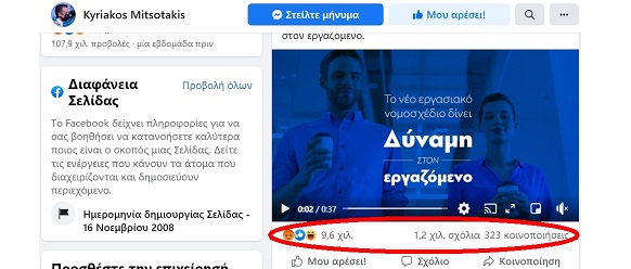 Το κυβερνητικό βίντεο ανέβασε και στον προσωπικό του λογαριασμό στο Facebook ο Κυριάκος Μητσοτάκης, ελπίζοντας προφανώς στη… θεαματική υποδοχή του, με βάση και το πόσο τα κυρίαρχα ΜΜΕ πασχίζουν να πείσουν πόσο ευεργετικό είναι για τους εργαζόμενους το νομοσχέδιο Χατζηδάκη.