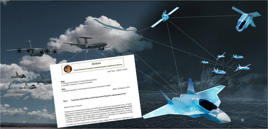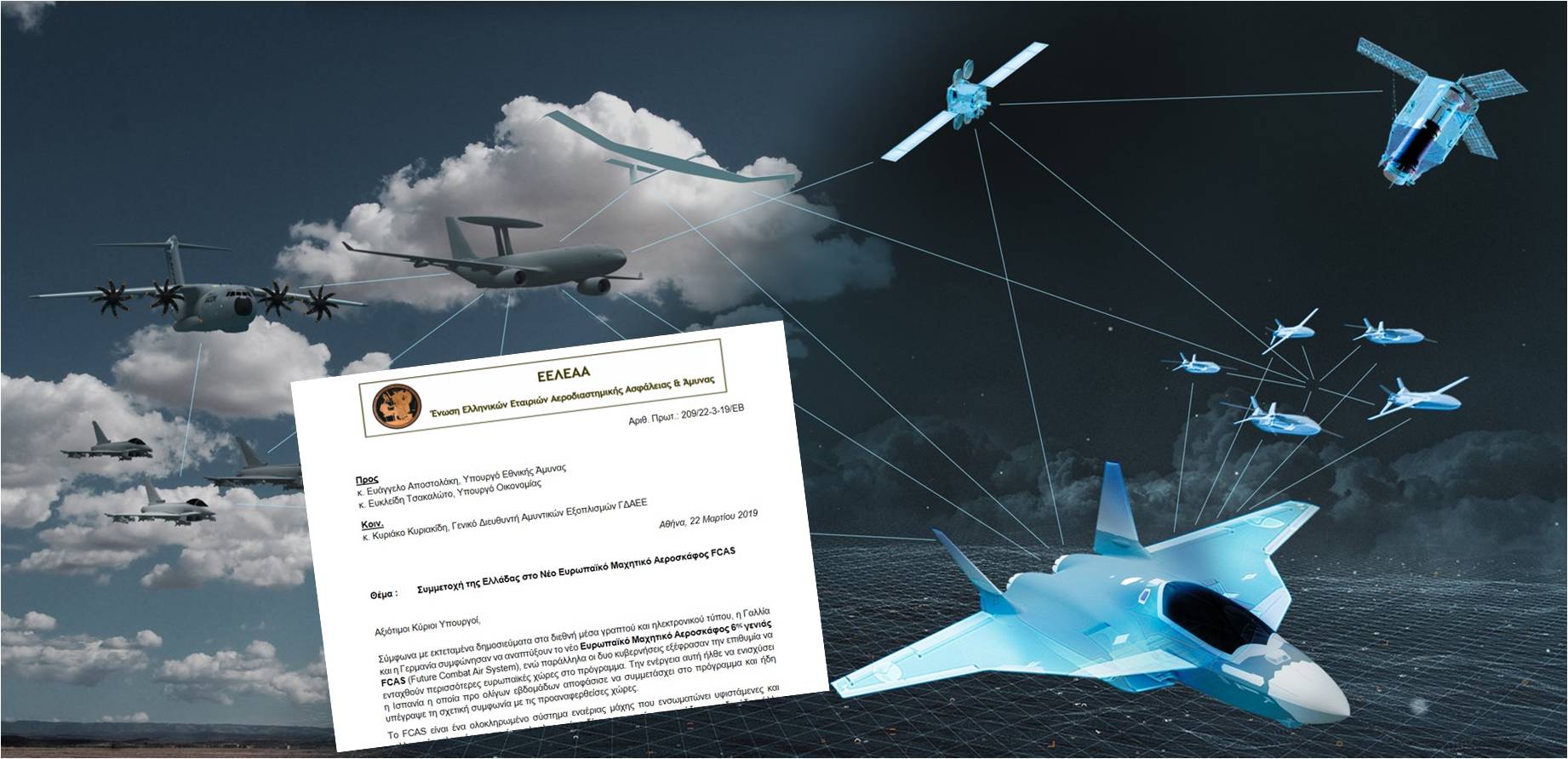 Επιστολή προς τους υπουργούς Εθνικής Άμυνας και Οικονομίας έστειλε η Ένωση Ελληνικών Εταιρειών Αεροδιαστημικής Ασφάλειας και Άμυνας (ΕΕΛΕΑΑ) με αντικείμενο την δυνατότητα συμμετοχής της Ελλάδας στο πρόγραμμα ανάπτυξης του νέου ευρωπαϊκού μαχητικού αεροσκάφους 6ης γενιάς FCAS.
