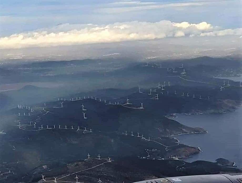Εύβοια απο ψηλά! Βουνά καταπράσινα κάποτε,με τους πολλαπλούς εμπρησμούς έγιναν κρανίου τόπος για να μετατραπούν σήμερα σε σιδερικά νεκροταφείου!Το 60% απο αυτές δεν λειτουργούν πιά, κ απλά τώρα κοσμούν τις βουνοκορφές τα κουφάρια τους! Το έγκλημα εχει όνομα κ ειναι διαχρονικό!