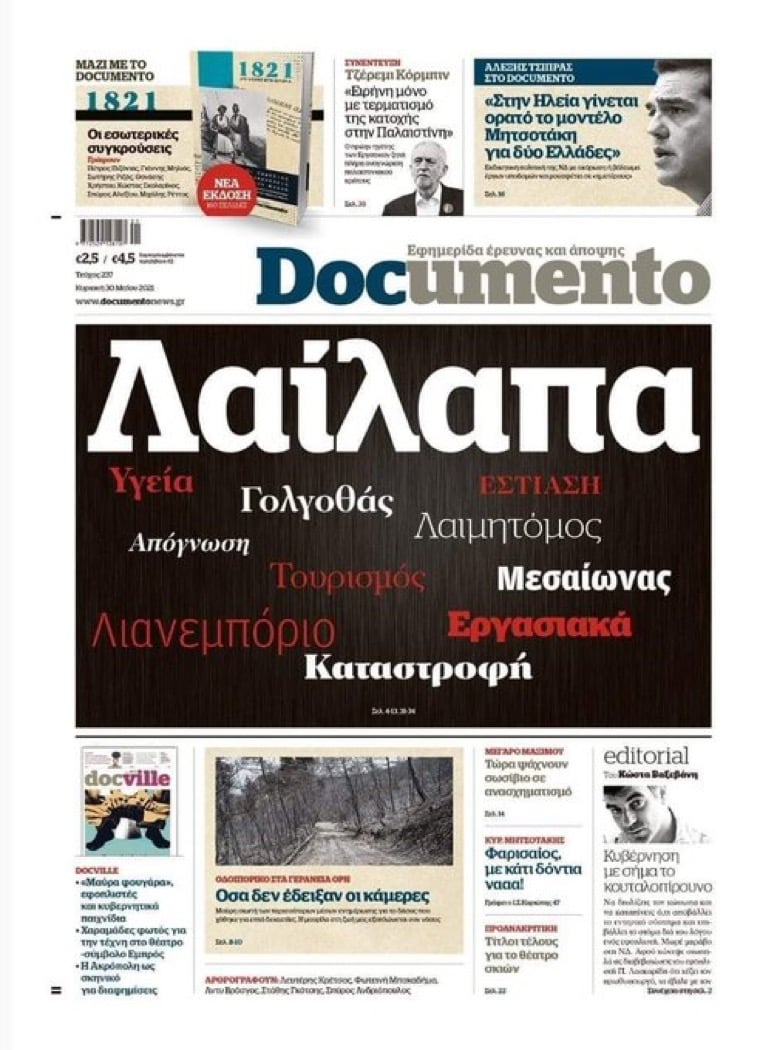 Με ένα συγκλονιστικό πρωτοσέλιδο κυκλοφορεί το Documento αυτή την Κυριακή.