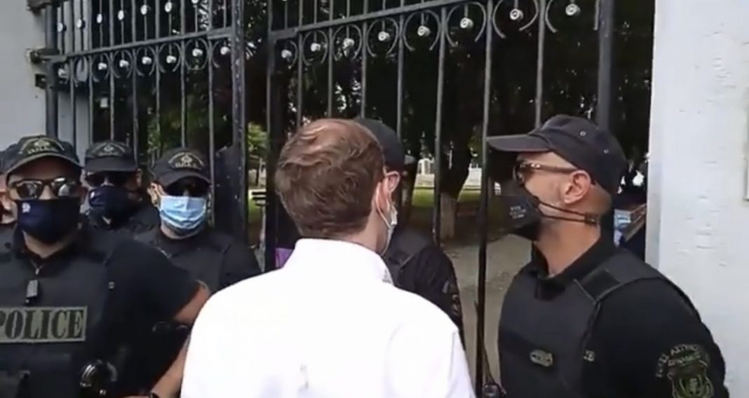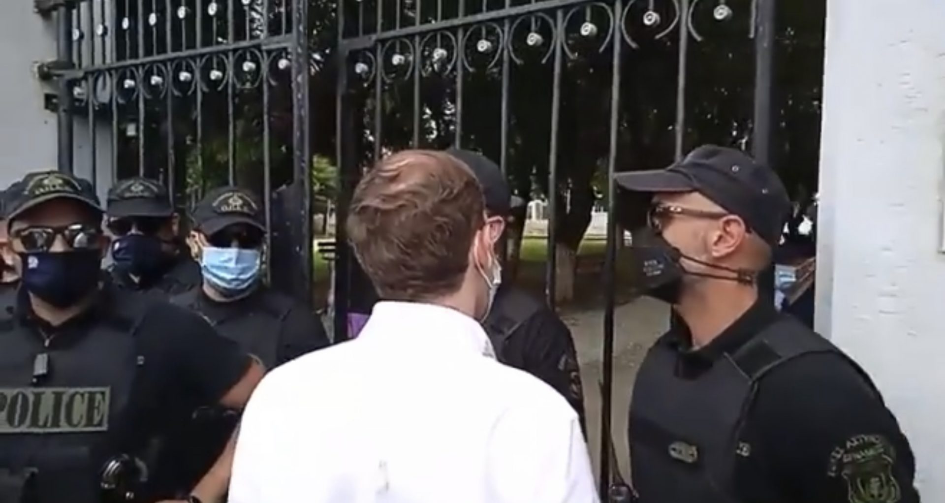 Ο δημοσιογράφος ήρθε πρόσωπο με πρόσωπο με τους αστυνομικούς που απαγορεύουν την είσοδο στους έλληνες δημοσιογράφους ενώ προηγουμένως είχαν αφήσει τους τούρκους να μπουν ανενόχλητοι, και απαιτούσε να μιλήσει με τον υπεύθυνο, τον επικεφαλής που είχε δώσει αυτή την αδιανόητη εντολή.