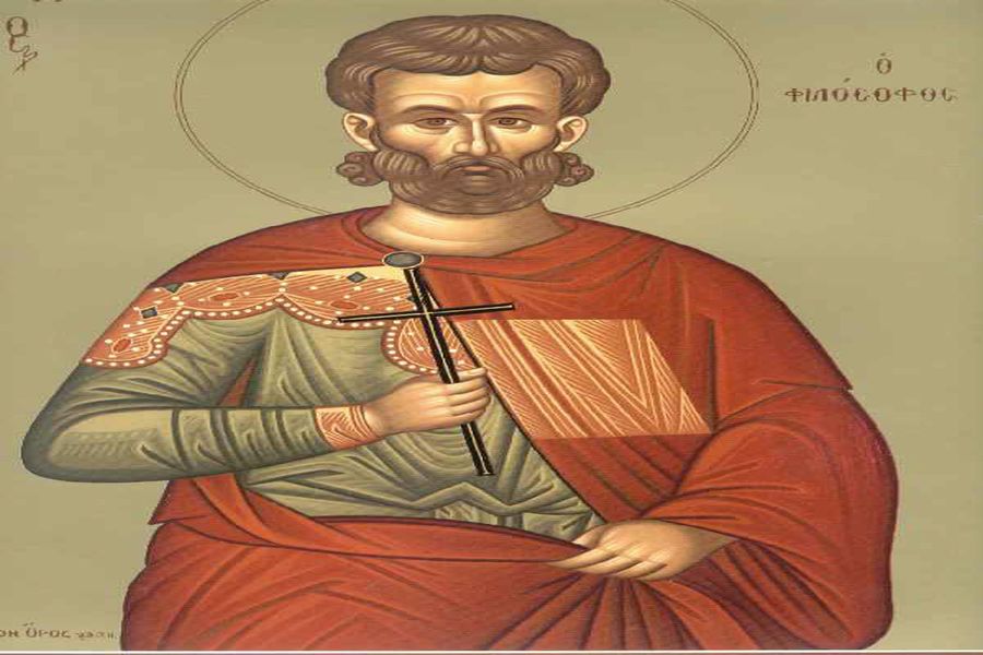 Από τους μεγαλύτερους διδασκάλους και απολογητές της Εκκλησίας, ο Ιουστίνος, γεννήθηκε 100 χρόνια μετά τον Χριστό, στη Συχέμ της Σαμάρειας. Οι γονείς του ήταν Έλληνες ειδωλολάτρες (τον πατέρα του, τον έλεγαν Πρίσκο Βάκχιο) και αυτή τη θρησκεία κληρονόμησαν και στο γιο τους, που τον διέκρινε καταπληκτική ευφυΐα, αλλά και φιλομάθεια. Ανήσυχο πνεύμα καθώς ήταν ο Ιουστίνος, γνώριζε όλες τις γνωστές φιλοσοφίες της εποχής του. Ωστόσο, όμως, καμιά δεν τον ανέπαυε πλήρως και συνεχώς αναζητούσε το κάτι άλλο, το τέλειο. O Θεός, βλέποντας την αγνότητα και την ειλικρινή πρόθεση των φιλοσοφικών του αναζητήσεων, ανταποκρίθηκε. Μια μέρα, καθώς ο Ιουστίνος βάδιζε κοντά στη θάλασσα, συνάντησε ένα γέροντα, που ήταν άριστα καταρτισμένος στην αλήθεια της Άγιας Γραφής. Επακολούθησε διάλογος και από τον Ιουστίνο εφαρμόστηκε ο λόγος του Σοφού Σειράχ: “Λόγον σοφόν εάν ακούσει επιστήμων, αινέσει αυτόν και έπ’ αυτόν προσθήσει.”. Δηλαδή, ο πραγματικά συνετός, αν ακούσει κάποιο σοφό λόγο, θα τον επαινέσει και πάνω σ’ αυτόν θα προσθέσει και ο ίδιος κάποιον άλλον. Έτσι και έγινε. O Ιουστίνος, αναλύοντας τα λόγια του γέροντα, ανακάλυψε την αλήθεια και με το τάλαντο της φιλοσοφίας που είχε, αναδείχθηκε όχι μόνο υπερασπιστής της χριστιανικής πίστης, αλλά και μάρτυρας, δίνοντας ακόμη και τη ζωή του. Αποκεφαλίστηκε στη Ρώμη, περί το 165 μ.Χ., επί βασιλείας Μάρκου Αυρηλίου.