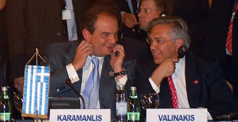 Ο Ιωάννης Βαληνάκης καθηγητής πανεπιστημίου στον τομέα των διεθνών σχέσεων και πρώην βουλευτής και υφυπουργός Εξωτερικών της κυβερνήσεως Κώστα Καραμανλή και ο Αντιπτέραρχος ε.α. Κωνσταντίνος Ιατρίδης ΕΠΙ ΤΟΥ ΠΙΕΣΤΗΡΙΟΥ με τον Γιώργο Σιαδήμα και τον Βασίλη Σκουρή