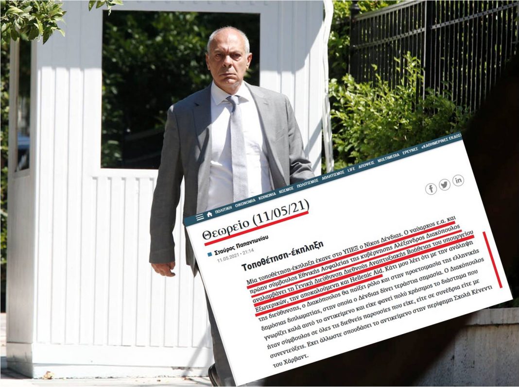 Μία τοποθέτηση-έκπληξη έκανε στο ΥΠΕΞ ο Νίκος Δένδιας. Ο ναύαρχος ε.α. και πρώην σύμβουλος Εθνικής Ασφαλείας της κυβέρνησης Αλέξανδρος Διακόπουλος αναλαμβάνει τη Γενική Διεύθυνση Διεθνούς Αναπτυξιακής Βοήθειας του υπουργείου Εξωτερικών, την αποκαλούμενη και Hellenic Aid. Κάτι μου λέει ότι με την ανάληψη της διεύθυνσης, ο Διακόπουλος θα παίξει ρόλο και στην προετοιμασία της ελληνικής δημόσιας διπλωματίας, στην οποία ο Δένδιας δίνει τεράστια σημασία. Ο Διακόπουλος γνωρίζει καλά αυτό το αντικείμενο και είχε φανεί πολύ χρήσιμος το διάστημα που ήταν σύμβουλος σε όλες τις διεθνείς παρουσίες που είχε, είτε σε συνέδρια είτε με συνεντεύξεις. Εχει άλλωστε σπουδάσει το αντικείμενο στην περίφημη Σχολή Κένεντι του Χάρβαντ.”