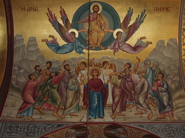 Την τεσσαρακοστή λοιπόν ημέρα, σύμφωνα με το Ευαγγέλιο του Λουκά, ο Κύριος τους μαθητές του «εξήγαγε έξω έως τη Βηθανία», στο όρος των Έλαιών όπου συνήθως προσηύχετο. «Και αφού σήκωσε τα χέρια του, τους ευλόγησε» (Λουκά 24,50) και «ευλογώντας τους, εχωρίσθηκε απ’ αυτούς και εφέρετο πρός τα πάνω, στον ουρανό» μέχρι που τον έχασαν από τα μάτια τους. Και μετά αφού Τον προσκύνησαν επέστρεψαν στην Ιερουσαλήμ με χαρά μεγάλη και έμεναν συνεχώς στο ναό, υμνολογώντας και δοξολογώντας το Θεό.