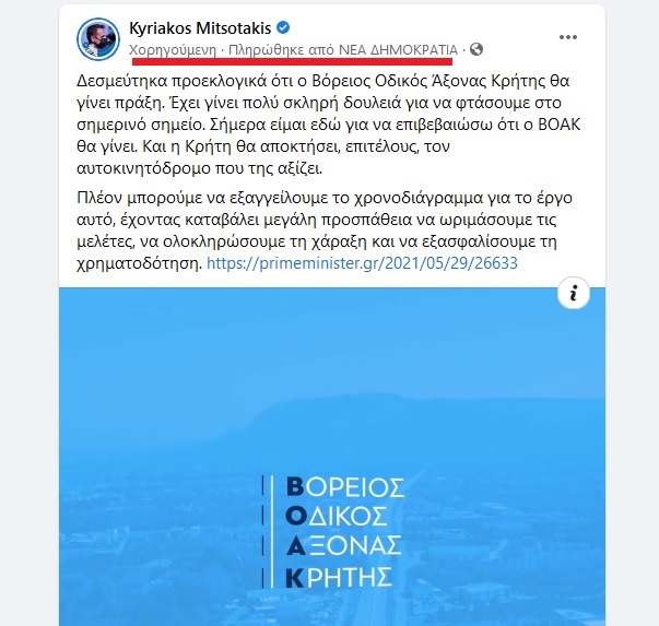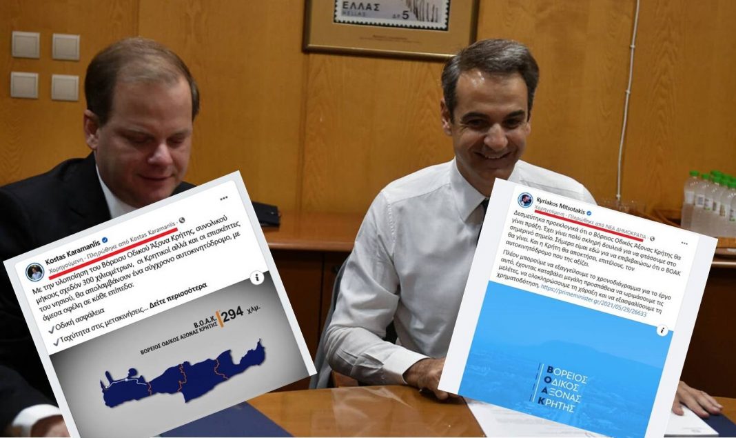 Ο υπουργός μεταφορών & επικοινωνιών Κ. Καραμανλής πλήρωσε από την τσέπη του και όχι από τα κομματικά ή υπουργικά ταμεία για διαφήμιση του Βόρειου Οδικού Άξονα Κρήτης