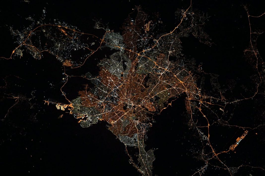 Μια υπέροχη εικόνα της νυχτερινής Αθήνας, έτσι όπως φαίνεται από τον Διεθνή Διαστημικό Σταθμό, δημοσίευσε Γάλλος αστροναύτης του Ευρωπαϊκού Οργανισμού Διαστήματος- ESA.