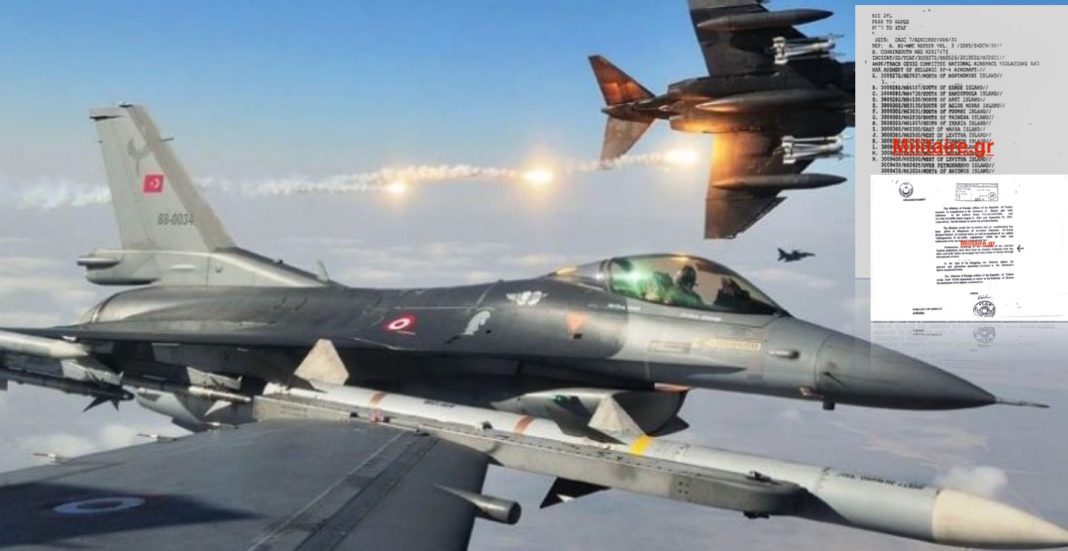 Η Τουρκία είχε παραβιάσει την ελληνική κυριαρχίαμε ζεύγος μαχητικών της F-16 πετώντας πάνω από νησίδες και βραχονησίδες (Σαμιοπούλα, Αρκοί, Αγιος Μηνάς, Τρίμενα, Μαύρα, Λεβίθα, Κίναρος, Πετροκάραβο, Ανυδρος, Θύμενα) και είχε παραβιάσει τον εθνικό εναέριο χώρο των 10νμ στα νησιά Σάμος, Φούρνοι, Ικαρία, Πάτμος.