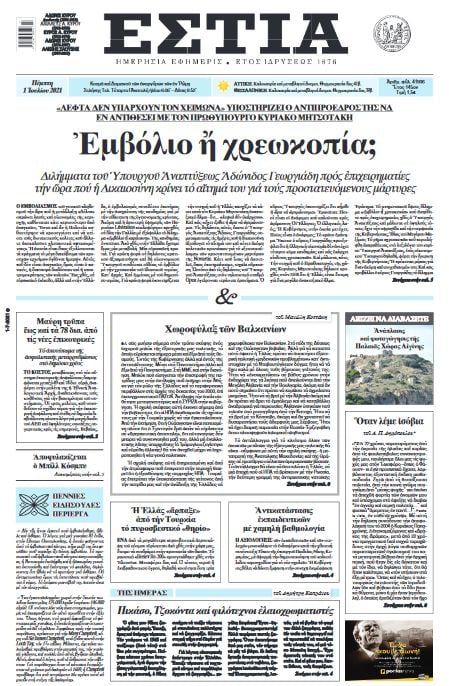 Το πρωτοσέλιδο της ημέρας από την εφημερίδα Εστία: Ο κ. Γιώργος Ξυλούρης εσιώπησε – Η παράταξις διεσύρθη