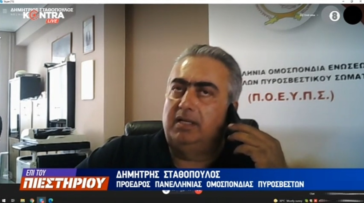 Ο Δημήτρης Σταθόπουλος πρόεδρος στην Πανελλήνια Ομοσπονδία Ενώσεων Υπαλλήλων Πυροσβεστικού Σώματος (ΠΟΕΥΠΣ) για τους ανεμβολίαστους που απομακρύνθηκαν από την Ειδική Μονάδα Αντιμετώπισης Καταστροφών (ΕΜΑΚ) ΕΠΙ ΤΟΥ ΠΙΕΣΤΗΡΙΟΥ με τον Γιώργο Σιαδήμα και τον Βασίλη Σκουρή