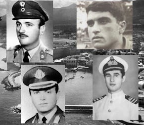 [i] Στη φωτογραφική σύνθεση που αποτελεί το «εξώφυλλο» του άρθρου: Αντισυνταγματάρχης Παύλος Κουρούπης (άνω αριστερά), Ταγματάρχης Κωνσταντίνος Τσιάκκας (κάτω αριστερά), Λοχαγός Νικόλαος Κατούντας (άνω δεξιά), Υποπλοίαρχος Ελευθέριος Τσομάκης (κάτω δεξιά). Στο background, φωτογραφία του λιμανιού της σκλαβωμένης Κερύνειας. Οι φωτογραφίες έχουν αντληθεί από το διαδίκτυο.