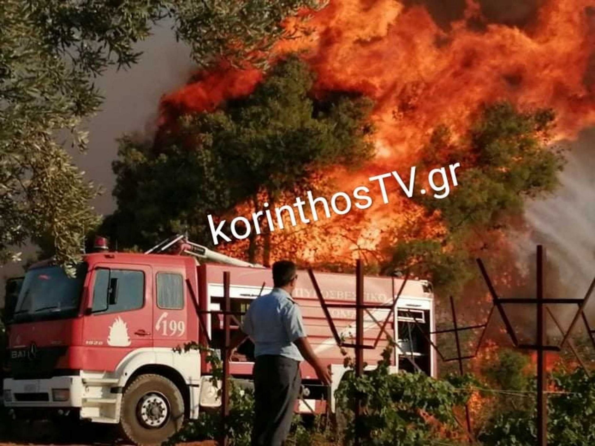 Καλλιέργειες με σταφίδες, ελιές και πεύκα, έγινα στάχτη ενώ με τους ισχυρούς ανέμους που πνέουν στην περιοχή η φωτιά έχει πάρει, πλέον, κατεύθυνση προς Αρχαίες Κλεωνές.