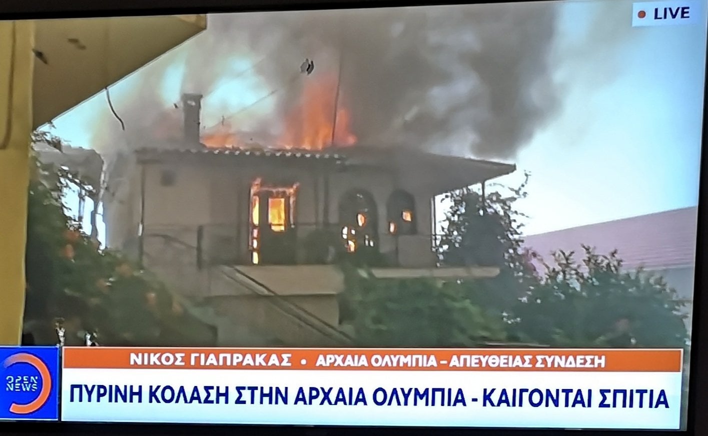 Οι φλόγες στην Αρχαία Ολυμπία πλέον έφτασαν στα σπίτια. Ο κρατικός μηχανισμός ειναι εξαφανισμένος. Οτι κάνουν οι κάτοικοι και οι εθελοντές μόνοι τους.